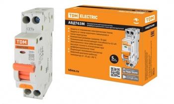 Автоматический Выключатель Дифференциального тока одномодульный АВДТ 63М C16 10мА 4,5кА TDM