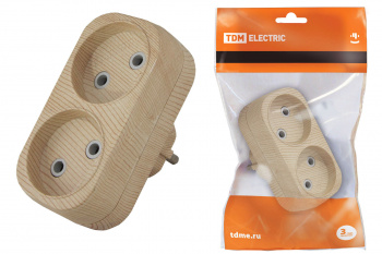 Блок на 2 гнезда 2П б/з плоский 6А 250B "Эко" (сосна) TDM