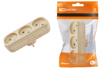 Блок на 3 гнезда 2П б/з плоский 6А 250B "Эко" (сосна) TDM