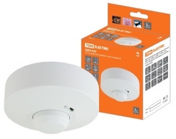 Датчик движения микроволновый (потол.) ДДМ-03П 5,8ГГц, 1200Вт, 10-720с, 1-8м, 3+лк, 180(сбоку)+360(сверху)гр, IP33, TDM