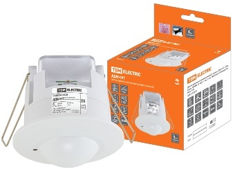 Датчик движения микроволновый (точечн.) ДДМ-04Т 5,8ГГц, 65мм, 1200Вт, 10-720с, 1-8м, 3+лк, 180(сбоку)+360(сверху)гр, IP20, TDM
