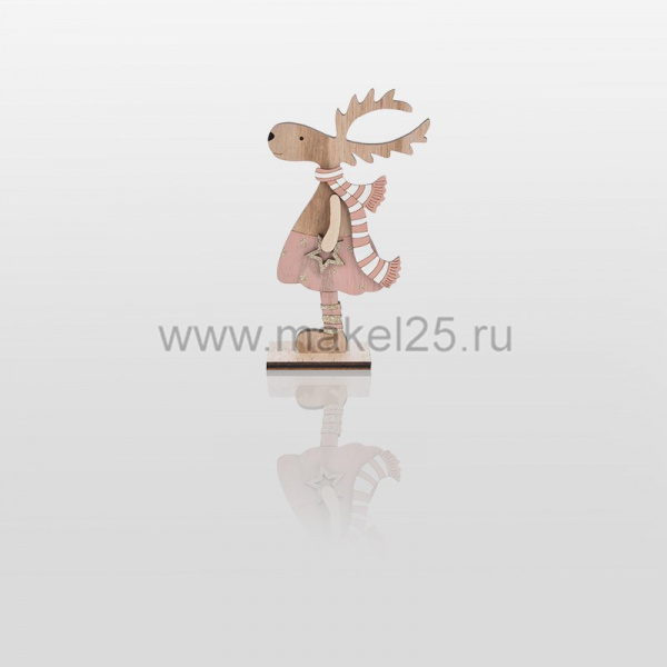 Деревянная фигурка "Рождественский Олень" Розовый 10,5*4*18 см