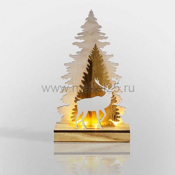 Деревянная фигурка с подсветкой "Елочка с оленем" 18*7*29 см