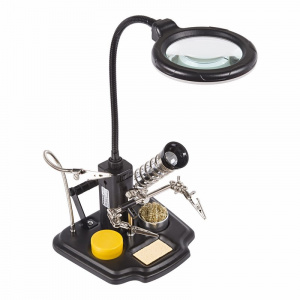 Держатель «Третья рука» ПРОФИ с лупой х3, подставка под паяльник, LED подсветка, стенд для припоя REXANT