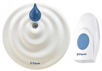 FERON звонок беспроводной 36 мелодий 2*1,5V круглый белый с синим IP20
