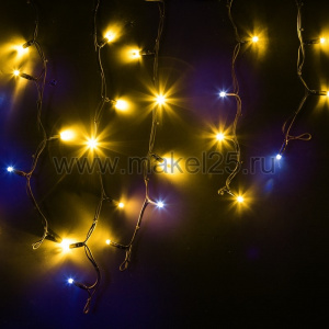 Гирлянда Айсикл (бахрома) светодиодный, 4,0 х 0,6 м, с эффектом мерцания, черный провод "КАУЧУК", 230 В, диоды желтые, NEON-NIGHT