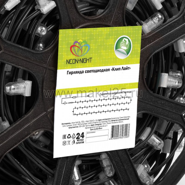 Гирлянда «LED Клип-лайт» 12 V, прозрачный ПВХ, 150 мм, цвет диодов белый