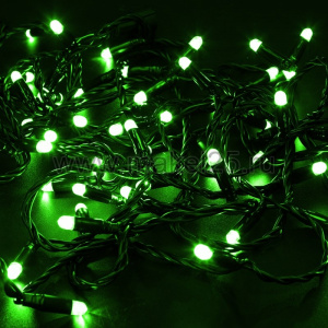 Гирлянда Нить 10м, постоянное свечение, черный ПВХ, 24В, цвет: Зелёный