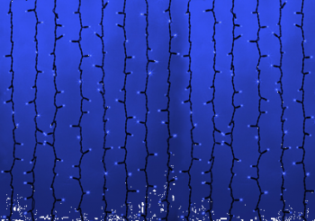 Гирлянда "Светодиодный Дождь" 2х1,5м, постоянное свечение, черный провод "КАУЧУК", 230 В, диоды СИНИЕ, 360 LED