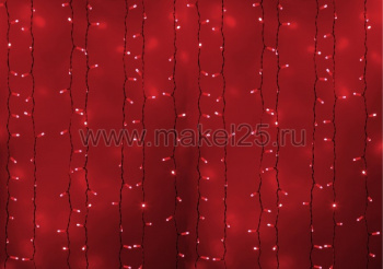 Гирлянда "Светодиодный Дождь" 2х3м, постоянное свечение, белый провод, 230 В, диоды КРАСНЫЕ, 760 LED