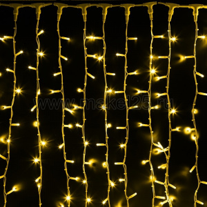 Гирлянда "Светодиодный Дождь" 2х3м, постоянное свечение, белый провод "КАУЧУК", 230 В, диоды ЖЁЛТЫЕ, 760 LED