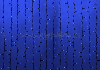 Гирлянда "Светодиодный Дождь" 2х3м, постоянное свечение, черный провод "КАУЧУК", 230 В, диоды СИНИЕ, 760 LED