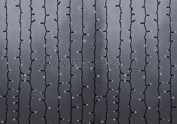Гирлянда "Светодиодный Дождь" 2х6м, эффект водопада, черный провод, 230 В, диоды БЕЛЫЕ, 1500 LED