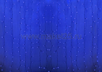 Гирлянда "Светодиодный Дождь" 2х6м, постоянное свечение, прозрачный провод, 230 В, диоды СИНИЕ, 1140 LED