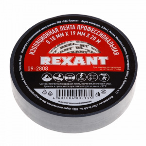 Изолента ПВХ профессиональная REXANT 0.18 х 19 мм х 20 м, серая, упаковка 10 роликов