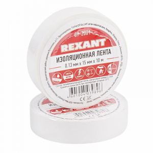 Изолента ПВХ REXANT 15 мм х 10 м, белая, упаковка 10 роликов
