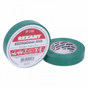 Изолента ПВХ REXANT 15 мм х 25 м, зеленая, упаковка 5 роликов