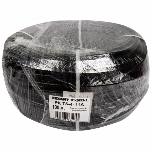Кабель коаксиальный REXANT РК 75-4-11А, бухта 100 м, черный
