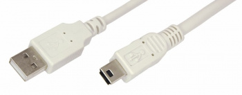 Кабель mini USB (male) штекер - USB-A (male) штекер, длина 1,8 метра, белый (PE пакет) REXANT