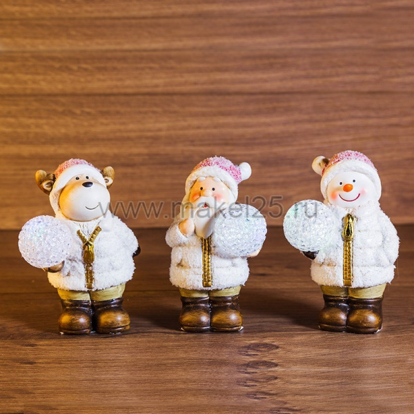 Керамическая фигурка "Дед Мороз, Снеговик и Олененок" 10*9*13 см