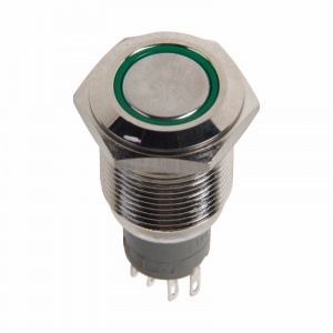 Кнопка антивандальная Ø16 250В Б/Фикс (5с) (ON)-OFF/(OFF)-ON зеленая REXANT