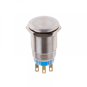 Кнопка антивандальная Ø19 12В Фикс (5с) ON-OFF/OFF-ON подсв/белая REXANT