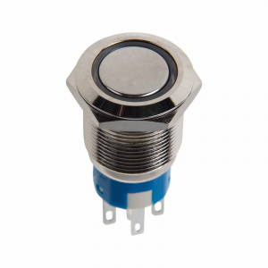 Кнопка антивандальная Ø19 12В Фикс (5с) ON-OFF/OFF-ON подсв/синяя REXANT