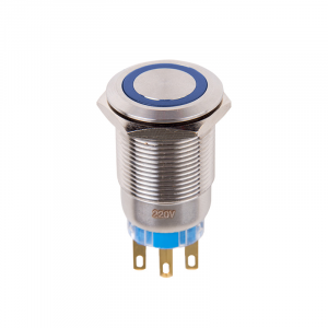 Кнопка антивандальная Ø19 250В Б/Фикс (5с) (ON)-OFF/(OFF)-ON синяя REXANT