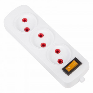 Колодка 3 гнезда с кнопкой без заземления «Эконом»
