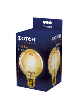 Лампа светодиодная ФОТОН LED FL G95 6W E27 2200K, серия ДЕКОР