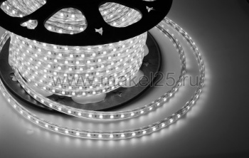 LED лента 220В, 10*7 мм, IP67, SMD 2835, 60 LED/m Белая, бухта 100 м