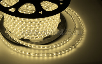 LED лента 220В, 10*7 мм, IP67, SMD 2835, 60 LED/m Тепло-белая, бухта 100 м