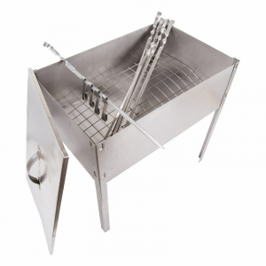 Мангал-коптильня "ЭКОНОМ" сборная с шестью шампурами в наборе (6*410мм) в гофрокартонной коробке СОКОЛ