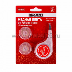 Медная лента (оплетка) для удаления припоя d=1.0 ммx1.5 м BOX+два ролика REXANT