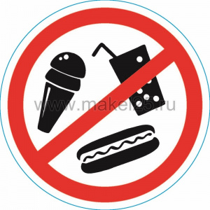 Наклейка запрещающий знак "С продуктами питания вход запрещен" 150*150 мм