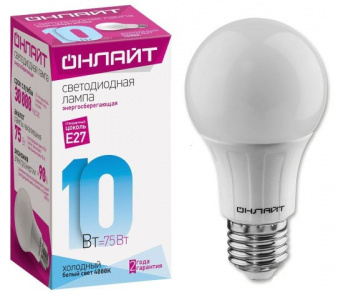 ОНЛАЙТ OLL лампа светодиодная ЛОН A60 10W 230V 4000К E27