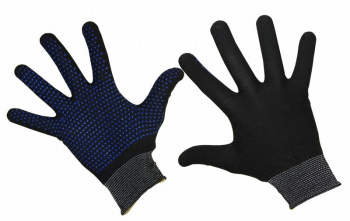 Перчатки нейлоновые с частичным покрытием ладони и пальцев «Точка» ПВХ черные