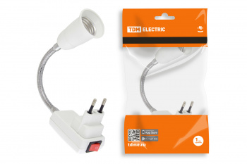 Переходник вилка-Е27 гибкий 150мм с выключателем, белый, TDM