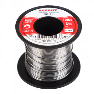 Припой катушка ПОС-61 без канифоли (Ø0,8 мм, 100 г) REXANT