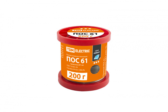 Припой ПОС 61, проволока, ГОСТ 21931-76, Ø1 мм, 200 г, катушка, серия "Алмаз" TDM