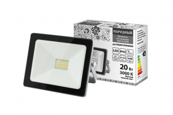 Прожектор светодиодный СДО-04-020Н 20 Вт, 3000 К, IP65, серый, Народный