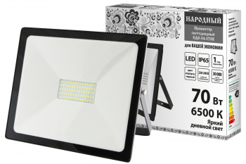 Прожектор светодиодный СДО-04-070Н 70 Вт, 6500 К, IP65, черный, Народный