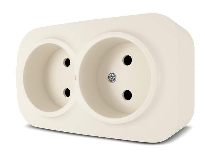 QUEL FLOS Розетка 2-ая без заземления открытой установки Крем