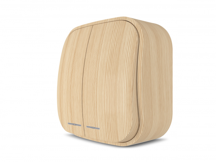 QUEL FLOS Выключатель 2-клавишный с подсветкой открытой установки Сосна