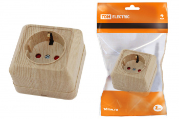 Розетка 2П+З открытой установки с з/ш IP20 16А, сосна "Ладога" TDM