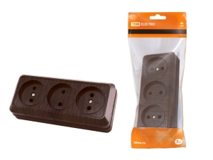 Розетка 3-х местная горизонтальная открытой установки IP20 10A с защитными шторками бук "Ладога" TDM