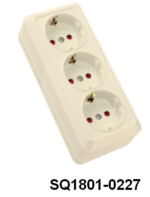 Розетка 3-х местная горизонтальная с заземлением открытой установки IP20 16A с защитными шторками крем "Ладога" TDМ