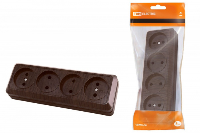 Розетка 4-х местная горизонтальная открытой установки IP20 10A бук "Ладога" TDM