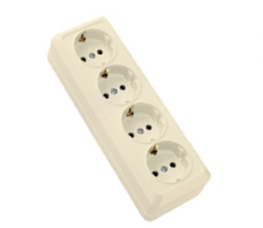 Розетка 4-х местная горизонтальная с заземлением открытой установки IP20 16A крем "Ладога" TDM