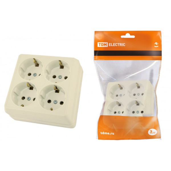 Розетка 4-х местная с заземлением открытой установки IP20 16A крем "Ладога" TDM